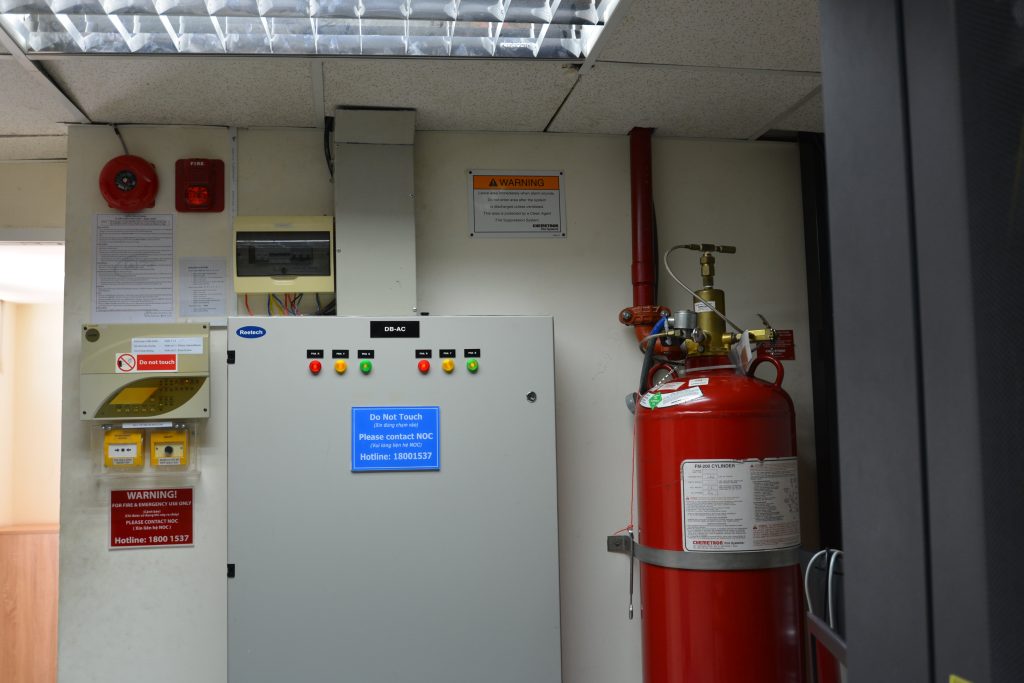 Hệ thống chữa cháy khí sạch: Với các trung tâm dữ liệu đạt chuẩn, hệ thống PCCC sử dụng khí sạch như FM200 hoặc Novec 1230, giúp dập tắt đám cháy mà không gây hư hại cho máy móc, đảm bảo máy chủ vẫn hoạt động bình thường sau khi xử lý sự cố.