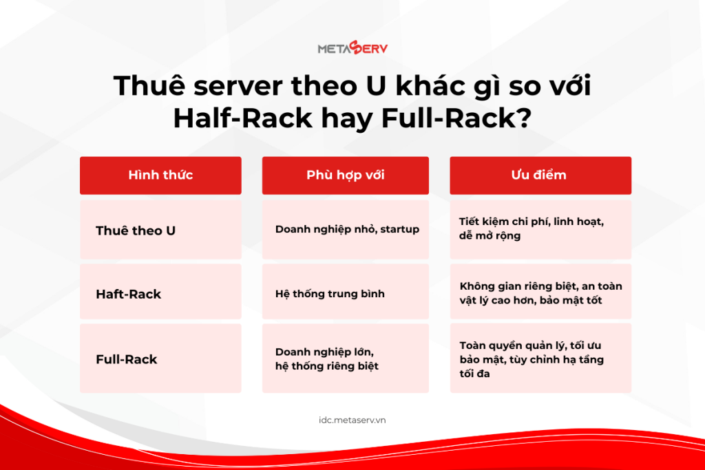 Thuê theo U khác gì so với Half-Rack hay Full-Rack?